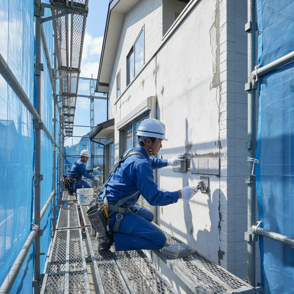 下地がきちんと処理されているかどうかで、外壁の見栄えや耐久性が大きく変わります。下地を平滑で健全な状態に整えることで、後から塗る塗料の密着性が高まり、美しく長持ちする仕上がりとなります。また、外壁がタイル仕上げの住宅ではタイル補修も重要です。経年でタイルが浮き(下地から部分的に剥離している状態)やひび割れを起こしている場合、専用の樹脂や接着剤を使ってタイルを再接着したり、破損が激しい部分は新しいタイルに張り替えるなどの処置を行います。補修が難しい大きなひびや欠損がある場合でも、当社の熟練スタッフが適切な方法で対処いたします。必要に応じて外壁全体の打診調査(ハンマーで軽く叩いて浮きを確認する調査)を行い、見えない劣化も見逃しません。下地補修工事によって外壁の安全性も高まり、仕上げの塗装や防水の効果を最大限に引き出すことができます。お住まいの外壁に気になるひび割れやタイルの剥がれがありましたら、放置せずぜひご相談ください。下地からしっかり直すことで、住まいを長く美しく保つことが可能です。